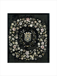 An early C18th English oval chaplet of shells mounted on wire encircling the arms of the family of Mohun of Boconnoc, a country house set in a fine estate 20 miles west of Antony