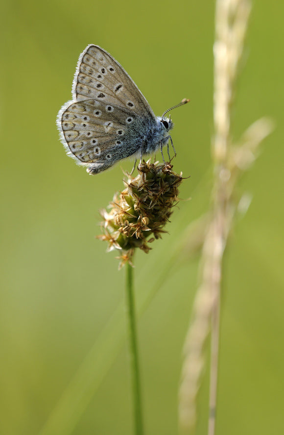 Common blue butterfly {Polyommatus icarus}, Collard Hill, Somerset