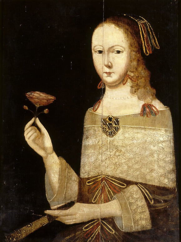 WOMAN HOLDING A CARNATION, 17th century painting in the Inner Hall at Packwood House.