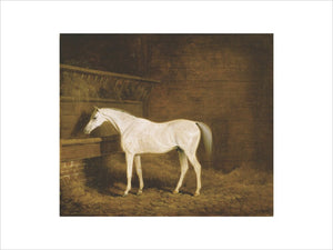 Oil painting on canvas, A Grey Racehorse in a Stable by James Barenger (London 1780 - London 1831), signed lower right: J Barenger.