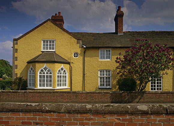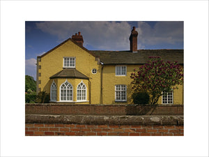 The pretty colour-washed building with gothic bay window was designed by Nash c.1802, in the sprit of Picturesque in the village of Atcham, at the gates of Attingham Park.